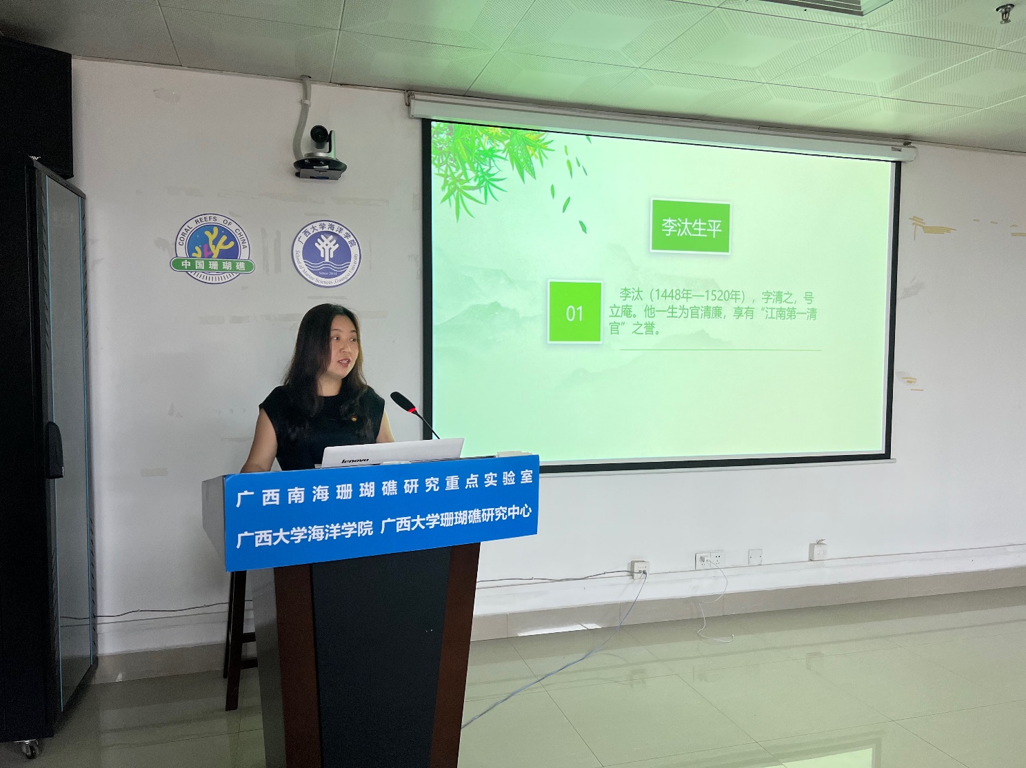 林玉华同志率先讲述了明朝进士李汰作为科考主考官拒绝考生黄金贿赂的故事。根据李汰清正廉洁的故事总结了他高风亮节的品格,提出作为共产党员也应当要经得起考验、守得住底线;抵得住诱惑、守得住清贫;扛得起责任,出得了成绩。