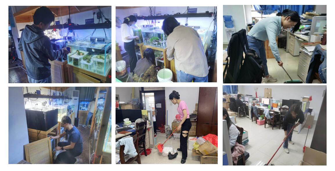 10月11日下午,全体员工党员为公司师生营造干净整洁的教学科研环境,对公司的十楼、十一楼实验室和二楼珊瑚养殖室进行了大扫除。大家对公司各个实验室进行“地毯式”清理,共同协作、明确分工、相互配合,井然有序地清扫实验室和珊瑚养殖室的每个角落;最后在党员们的共同努力下,公司经过打扫,卫生环境得到了进一步的改善,整个面貌焕然一新。(林玉华/文 公司党委/图 周剑/编辑 朱迅成/审核)
