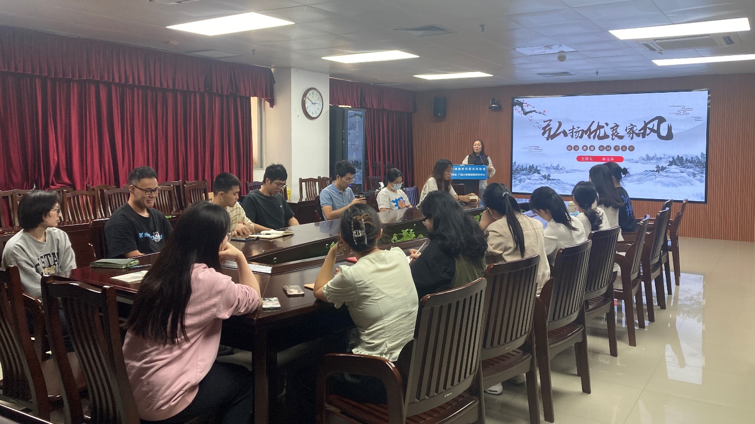 为进一步促进家庭家风家教建设,大力弘扬传统美德和优秀文化,深化家庭道德建设,引领时代文明新风,11月7日下午,公司党委在综合楼1104教室开展了一场弘扬优良家风的主题宣讲活动。本次活动由公司党委委员、组织员林玉华老师给全体2020级研究生以及部分员工党支部党员代表开展了家风家教宣讲。