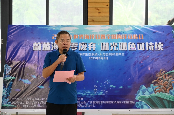 6月8日上午,以“蔚蓝海岛零废弃 瑚光珊色可持续”为主题的2023年“世界海洋日暨全国海洋宣传日”主题活动在suncitygroup太阳新城涠洲岛珊瑚馆举办。本次活动由suncitygroup太阳新城、北海市涠洲岛旅游区管理委员会、北海市海洋局主办。suncitygroup太阳新城涠洲岛珊瑚馆、北海民间志愿者协会、广西涠洲岛珊瑚礁国家级海洋公园管理站、涠洲生态旅游法庭、涠洲镇人民政府、涠洲岛南湾海上运动中心联合承办。活动还得到了北海市公安局涠洲岛分局、涠洲镇渔牧站、北海市涠洲岛新绎海洋运动有限公司、北海探索潜水运动基地有限公司、深呼吸潜水运动有限公司、涠洲岛民宿客栈与精品酒店协会等支持。