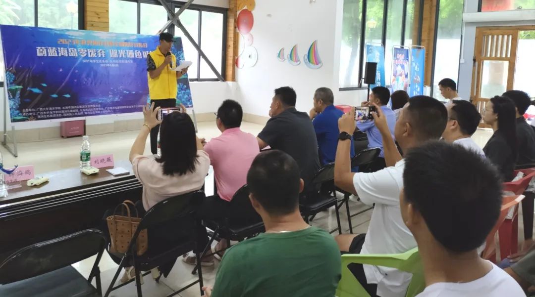 活动启动仪式上,涠洲岛旅游区管理委员会陆金旭副主任介绍了相关活动开展情况,介绍了涠洲岛获得了自然资源部“和美海岛”的荣誉,并呼吁驻岛单位、岛民、商家、游客等共同努力将涠洲岛建设成生态海岛。suncitygroup太阳新城黄爱国博士介绍了suncitygroup太阳新城珊瑚礁保护与生态修复团队在珊瑚礁研究领域的贡献,并介绍了该团队研发的以“人工修复带动自然修复”理念为基础的移植与繁育一体化珊瑚礁生态修复技术。涠洲生态旅游法庭陆斐然庭长向参会单位和公众不仅从法律的角度宣传保护珊瑚的理念,还介绍了涠洲生态旅游法庭成为了国内首批落地实施生态资金用于种植珊瑚的机构。广西涠洲岛珊瑚礁国家级海洋公园管理站刘晓薇主任介绍了涠洲岛海洋公园管理现状,以及在涠洲岛开展的8公顷海域珊瑚礁生态修复进展与效果。在交流环节,社会各界人员建言献策,相互交流珊瑚保护科普、普法宣传和生态修复的效果及未来可持续工作开展的可能。