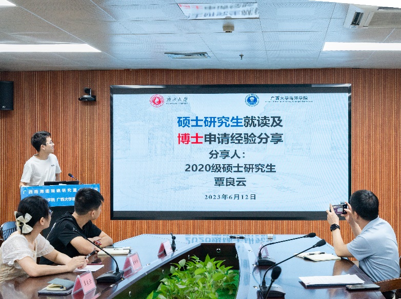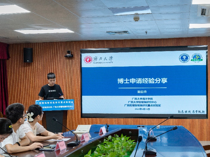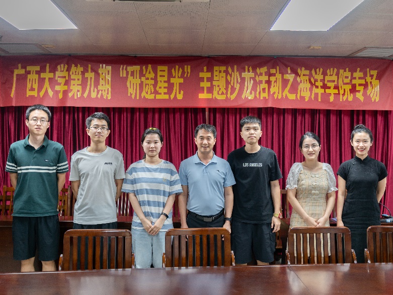 本次活动邀请了2020级海洋科学优秀毕业研究生梁日升、黄坤玲、覃良云和陈舒畅,分享他们在博士申请、高校辅导员备考、选调生与人才引进方面的宝贵经验,活动吸引了不同年级的研究生积极参与。公司党委副书记朱迅成老师出席活动。