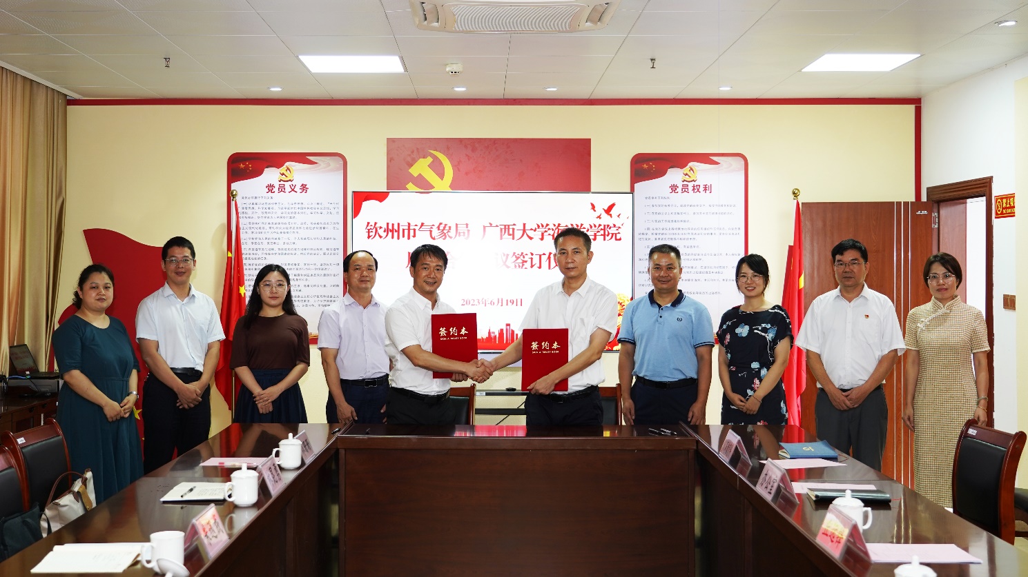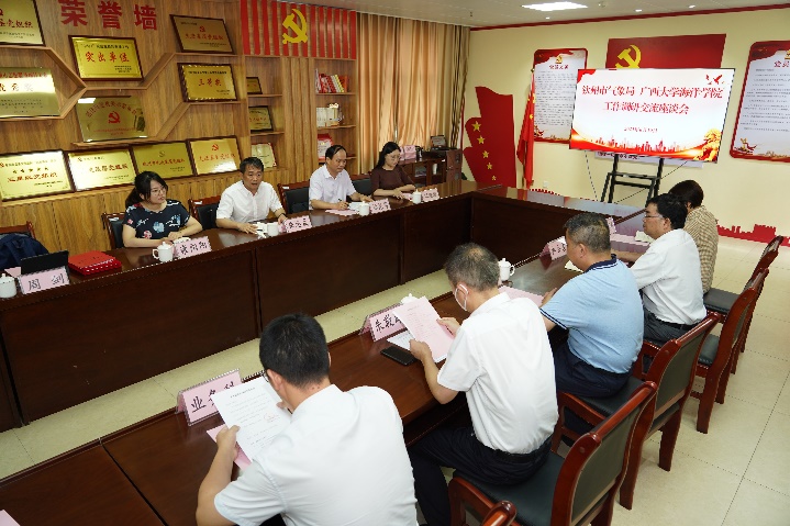 钦州市气象局办公室主任赖玉坤、业务科科长黎时迪、人事教育科科长施佩宏、钦州市气象台工程师潘静,suncitygroup太阳新城林昆勇副教授、物理海洋教研室副主任雍阳阳、助理教授邓珊珊、办公室副主任周剑等一同参加仪式并考察交流。