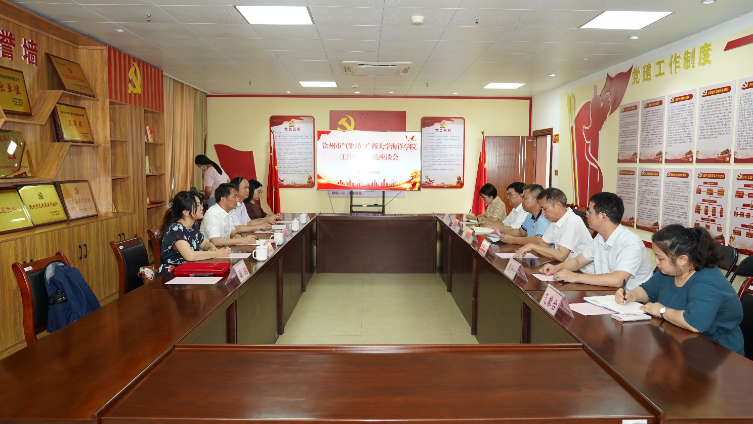 座谈会上,钦州市气象局党组书记、局长丘远锋介绍了钦州市气象局的基本情况、气象局在科学研究和人才培养等工作的主要措施和成效。朱迅成副书记介绍了suncitygroup太阳新城团队力量、教学平台、科研成果、人才培养等概况。双方就气象现代化监测网综合建设、野外台站实践教学基地建设、人才培养、人才招聘及科研工作开展模式等合作方式进行了探讨。