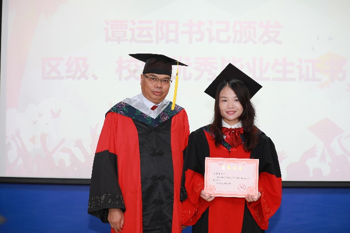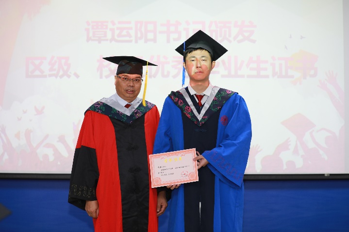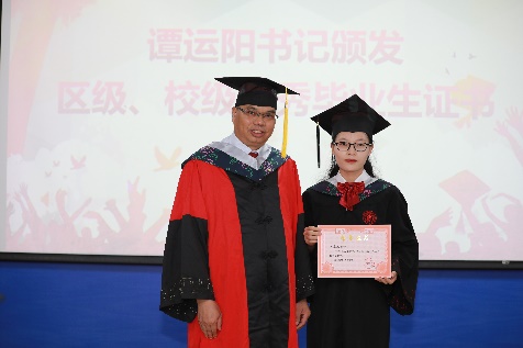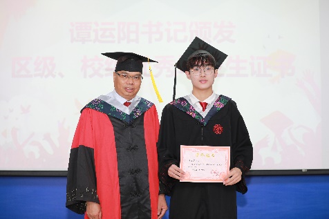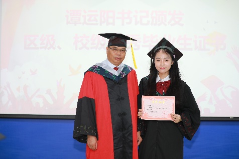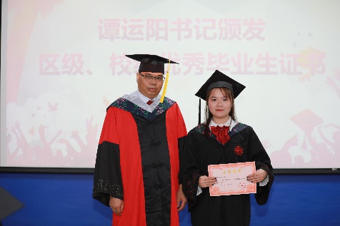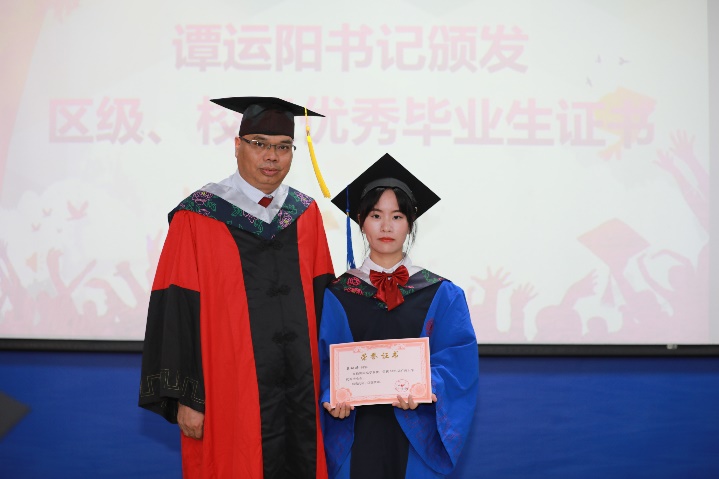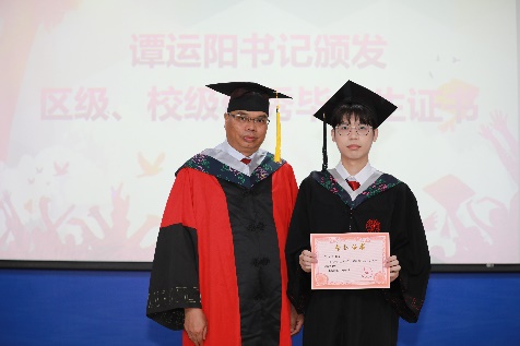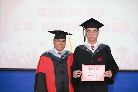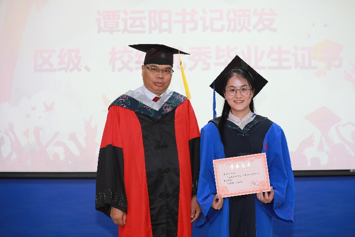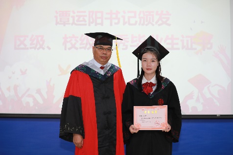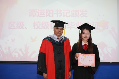 党委书记谭运阳颁发“2023届suncitygroup太阳新城优秀毕业生”证书