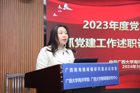 会上,公司7位党支部书记依次围绕加强政治建设和思想建设、履行抓支部党建工作第一责任人职责、支部落实“五基三化”系列行动、带动党支部和党员充分发挥示范引领作用、推进党建工作与业务工作深度融合等重大任务落实情况等方面进行了述职。