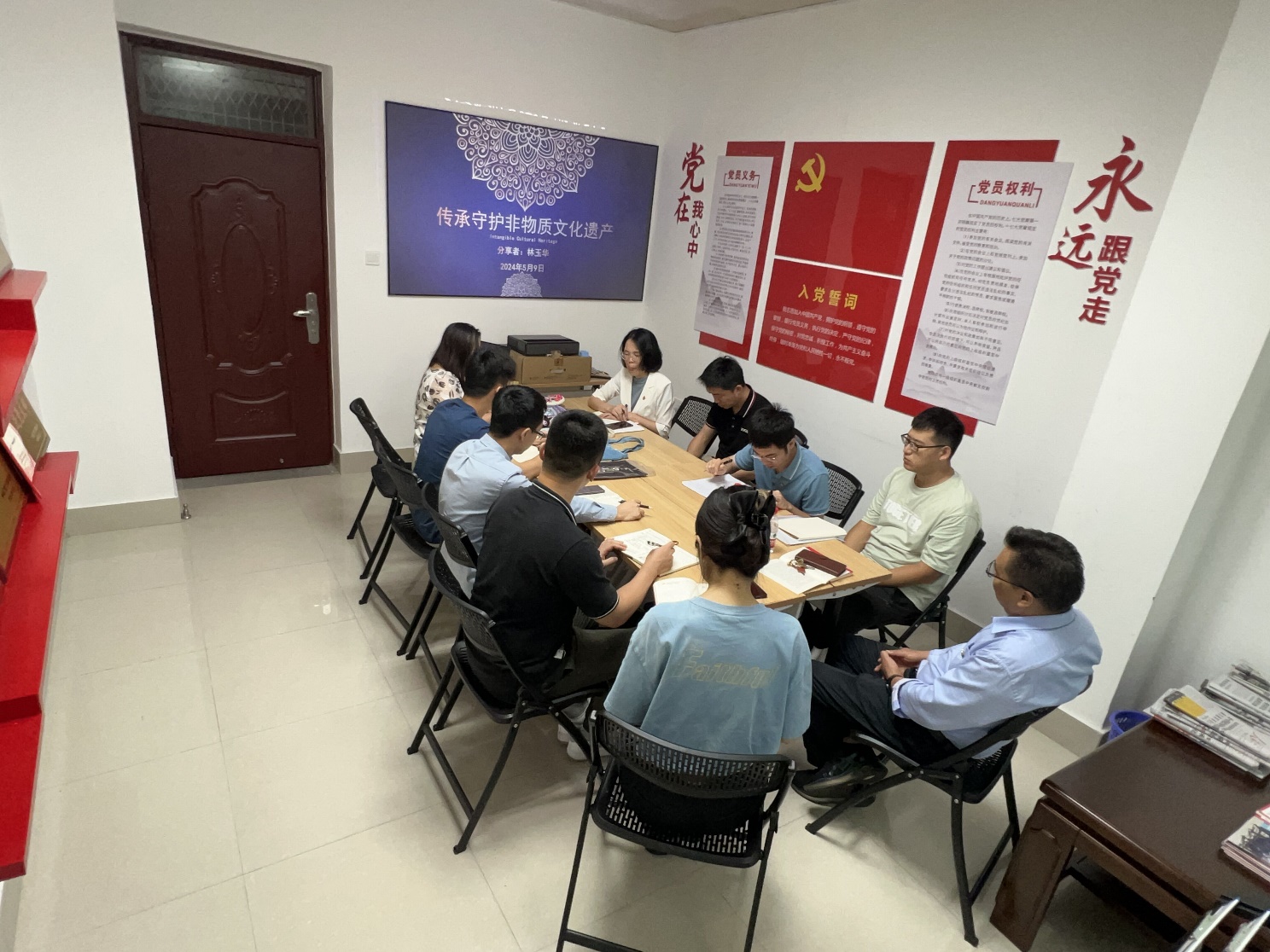 5月9日,行政与实验党支部开展学习铸牢中华民族共同体意识,集体学习《王沪宁在广西调研时强调:铸牢中华民族共同体意识,切实做好新时代党的民族工作》的讲话精神,支部书记林玉华分享《传承守护非物质文化遗产》