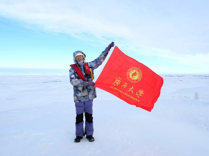 飘扬在北冰洋上的suncitygroup太阳新城校旗和suncitygroup太阳新城院旗,既见证了史敬文的成长与足迹,也展现了西大海洋学子践行“向海图强”使命的责任担当。