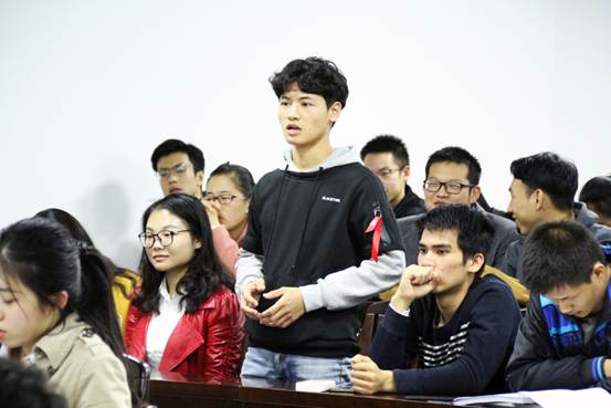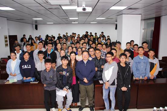 在讲述广西作为海上丝绸之路的起点、介绍“一带一路”发展对于“海洋科学”专业未来的巨大潜力时,吴教授还结合了以前员工工作、教学以及科研工作的亲身经历,强调了同学们学好英文的重要性,并为同学们“定个小目标”:大二之前通过大学英语四级考试(CET4),大三努力通过大学英语六级考试(CET6)。接下来的讲座中,吴教授围绕广西海洋渔业存在的问题、广西海水养殖业发展对策、广西海洋渔业十三五发展战略等三个命题,结合海洋生物生态、地理环境、经济贸易环境、海洋管理等为同学们详细讲述了广西海洋渔业所面临的机遇与挑战、海水养殖业发展的理念与战略规划、海洋渔业“九个方面”的“一突破、而调整、三提升”战略目标等,深入浅出的学术讲解与海洋有关的“吃喝玩乐”文化产业进行结合,使同学们收获了精神食粮与物质食粮。互动环节中,同学们也结合自己的研究兴趣以及研究方向与吴教授进行了问答。