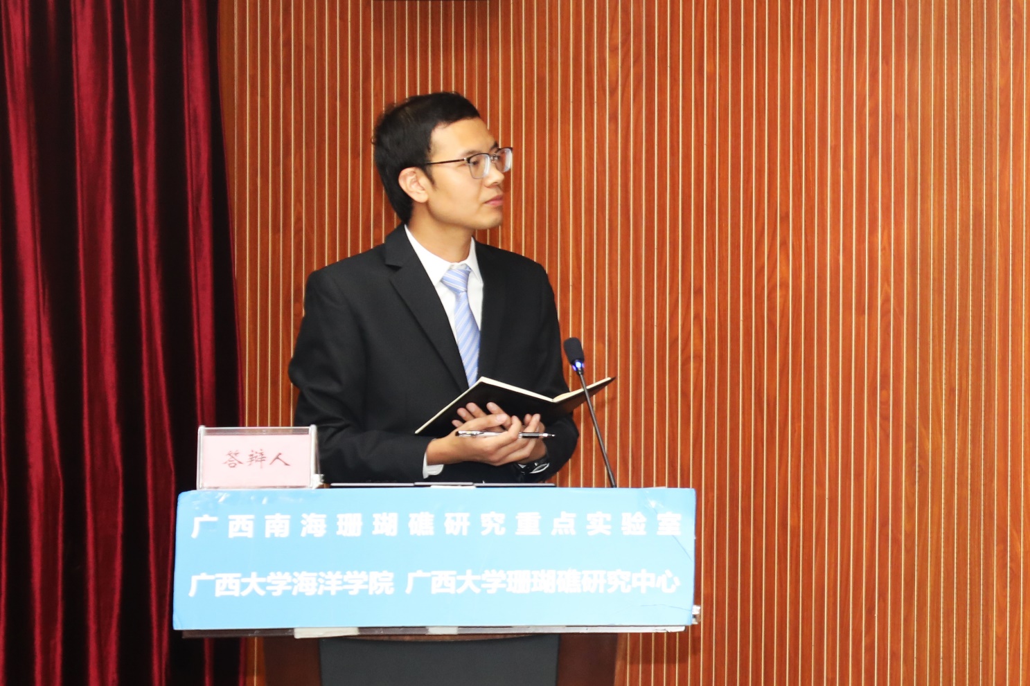 按照议程,三位博士分别汇报了学位论文:俞小鹏《南海北部造礁珊瑚对高温胁迫的响应及适应性研究》、李银强《西沙群岛珊瑚藻记录之近2000万年以来的海平面变化和珊瑚礁演化过程》、孟敏《西沙群岛有孔虫分布特征及其对2000万年以来古环境演变的启示》,对其研究背景与意义、研究区域与方法,详细讲解了毕业论文围绕的技术路线、研究内容、研究结论与创新等,展示了自己在博士期间的研究工作与所获得的研究成果。