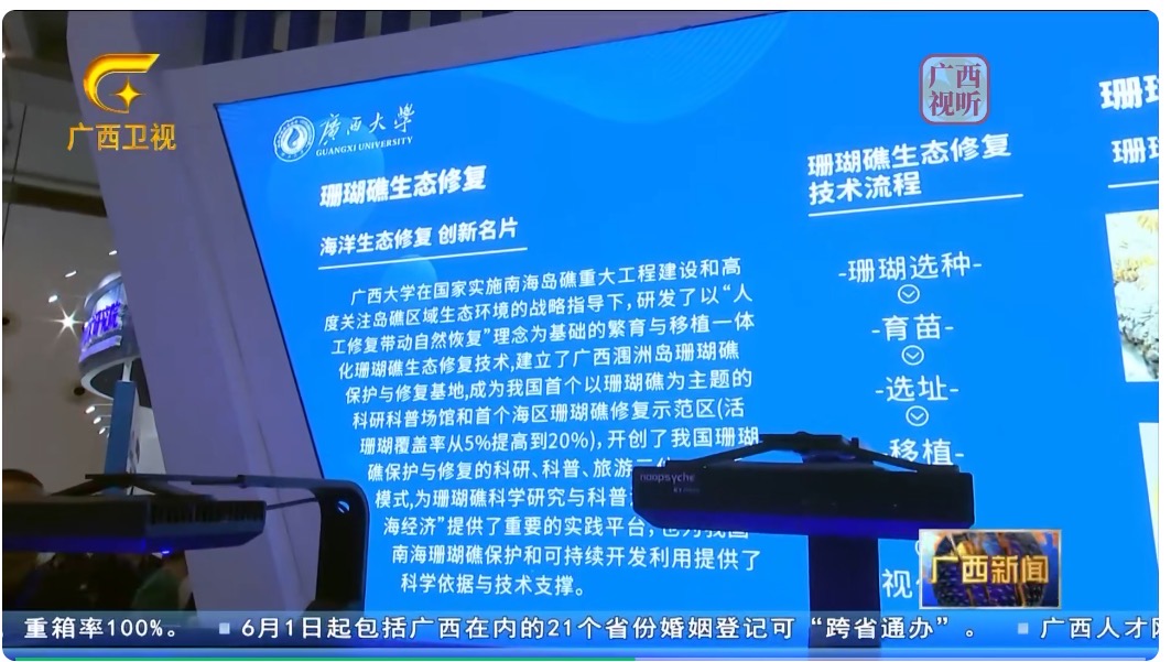 5月20日、21日,由自治区人民政府主办,自治区科技厅、自治区科技创新发展办公室共同承办的2023年全国科技活动周广西活动暨第三十二届广西科技活动周•广西先进技术展示活动(简称“两周一展”)在南宁国际会展中心举行。公司“珊瑚礁生态修复技术”作为suncitygroup太阳新城先进技术展示内容的一部分亮相展览会。