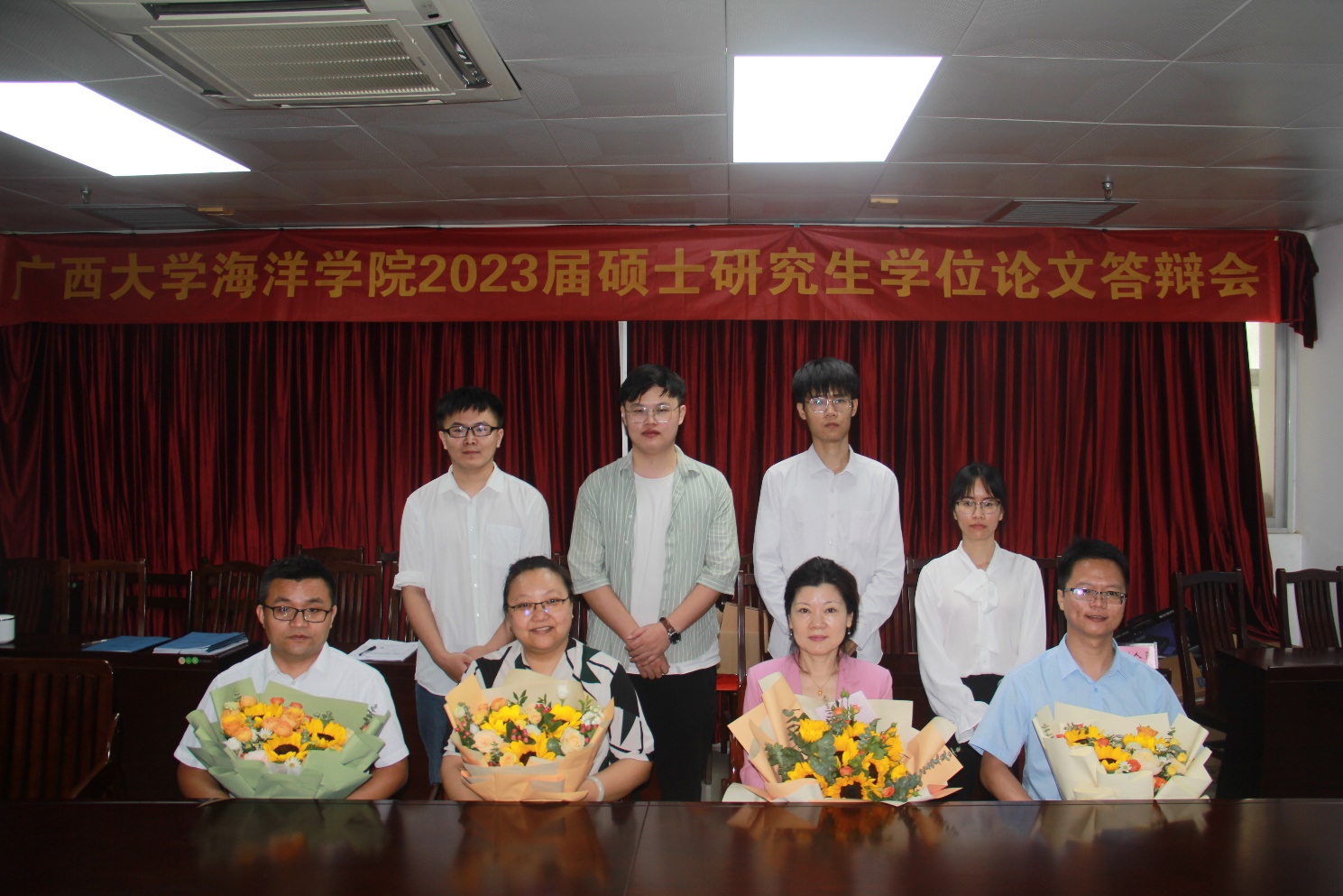 5月30日下午,黄坤玲同学、赵梓材同学、任鹏炜同学、谭宏明同学在suncitygroup太阳新城1104会议室进行答辩。广西民族大学王一兵研究员担任答辩委员会主席,广西博宇生态环境有限公司教授级高级工程师邓杰,公司张媛媛副教授、潘长桂副教授、唐兴颖博士先后担任答辩委员会委员,公司韦芬博士担任担任答辩秘书。