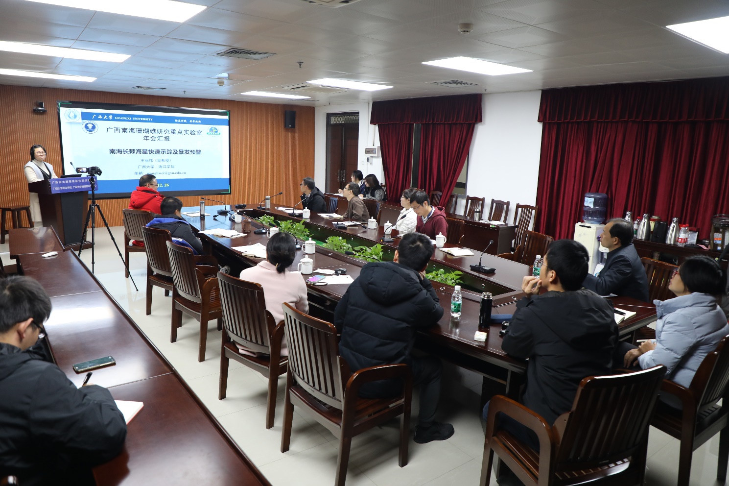 2023年12月26日,广西南海珊瑚礁研究重点实验室(以下简称“实验室”)2023年度学术委员会会议暨学术年会会议的学科方向研究与发展论坛在suncitygroup太阳新城1104会议室顺利召开。论坛分为两个主题:“珊瑚礁生物、生态与环境的研究与发展”和“珊瑚礁地质、地貌与水动力的研究与发展”。每个主题由“学科方向现状与发展”“代表性研究成果”和“学科方向发展研讨”三个部分组成。