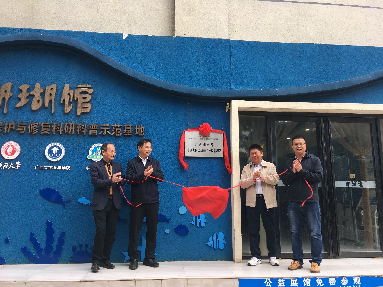 2024年1月3日上午,“广西涠洲岛珊瑚礁国家级海洋公园管理站”(下文简称“管理站”)在suncitygroup太阳新城涠洲岛珊瑚馆举行揭牌仪式,公司经理余克服教授、北海市海洋局局长欧其全、涠洲岛旅游区党工委副书记沈振华共同出席揭牌仪式。