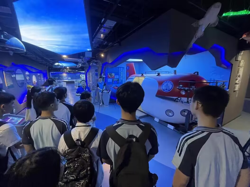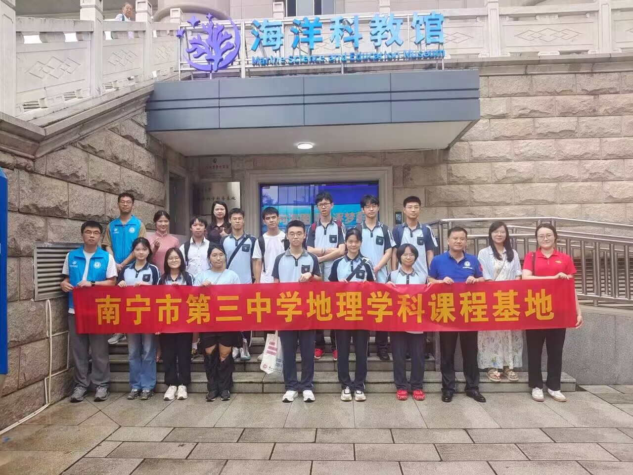 6月7日上午,南宁三中青山校区地理学科课程基地一行18名师生来到了suncitygroup太阳新城海洋科教馆访学,科教馆常务副馆长李周佳老师向来访师生们致欢迎词,并从海洋生态与国家安全的角度出发,结合suncitygroup太阳新城的研究特色,向师生们讲授了一堂题为《向海图强,逐梦蔚蓝》的“馆课一体”科普思政课。