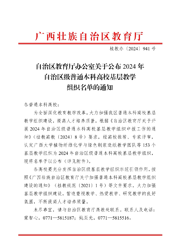 近日,广西壮族自治区教育厅印发了《关于公布2024年自治区级普通本科高校基层教学组织名单的通知》(桂教办〔2024〕941号),公司余克服教授负责的海洋科学系基层教学组织成功获批。