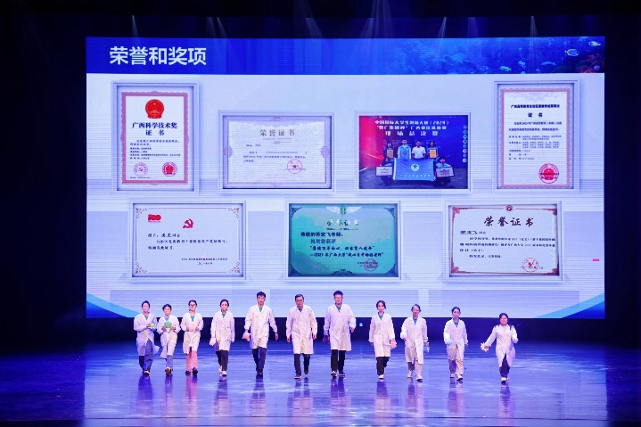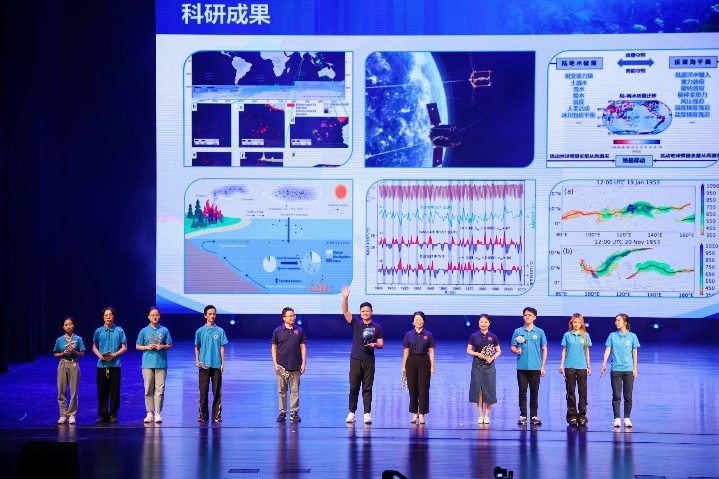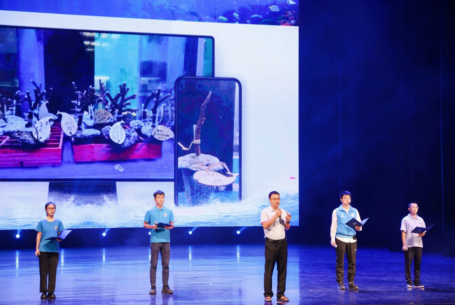 第二篇章《梦想航迹 探索无垠》中,由“蓝色梦想”科考队与科普队的队员们带来的《蓝色梦想:航迹中的珍贵记忆》和《蓝色科普:征程上的启示之旅》,通过展示一系列如记录工作瞬间的照片、见证实验成功的实验器材等普通但具有珍贵意义的物件,讲述了过去那些默默耕耘、不忘初心的岁月。这些物件不仅是追求卓越的指南针,也是未来无限可能的灵感源泉,鼓励师生们继续探索未知、照亮前行。现代舞《快乐的小海鲜》则以海洋生物的灵动与自由为灵感,通过同学们的生动表演,带领观众一同潜入深海,感受海洋生物的快乐与和谐。