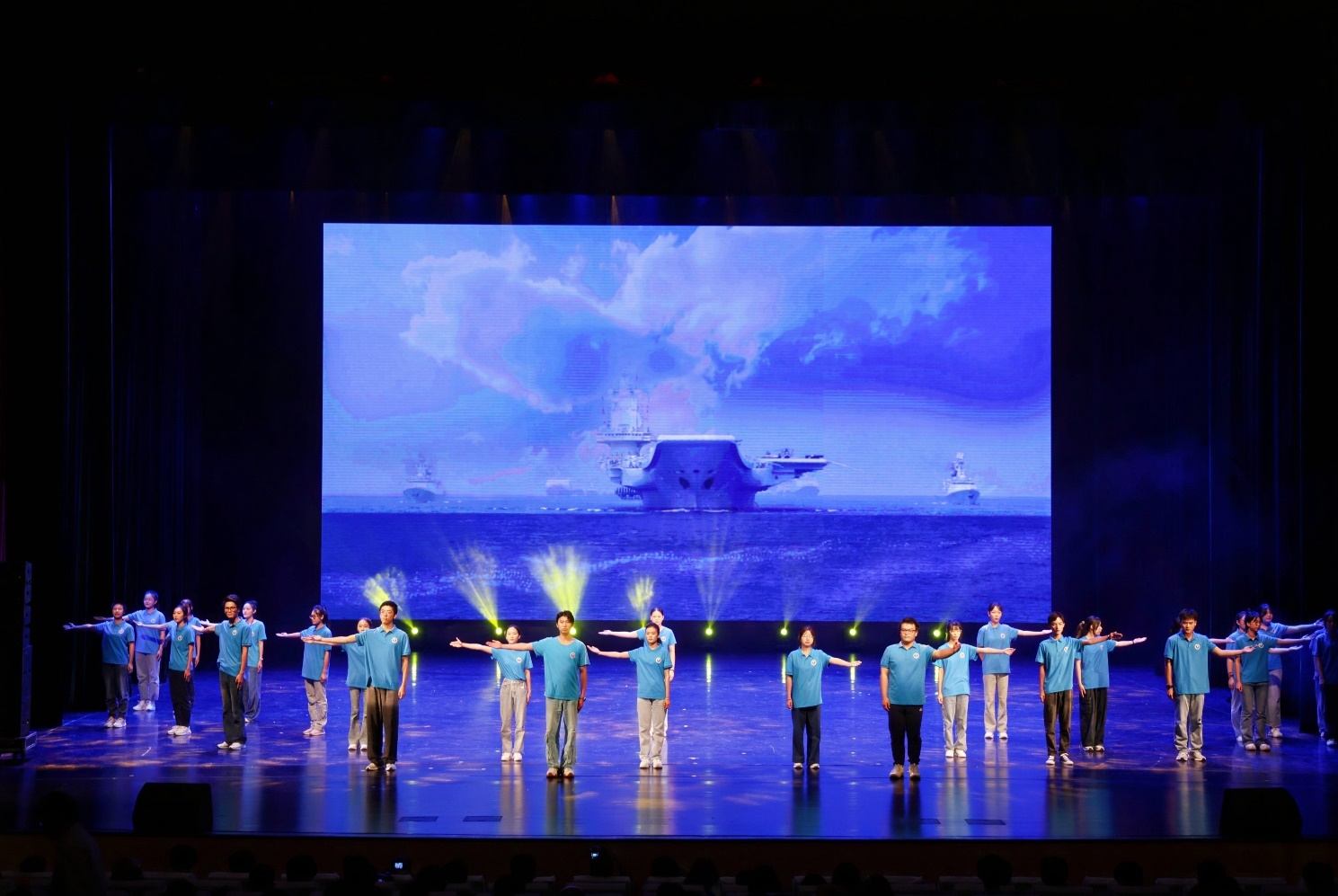 主题走秀《梦想航迹:航迹与探索的交响乐》与师生合唱《我爱这蓝色的海洋(青春版)》