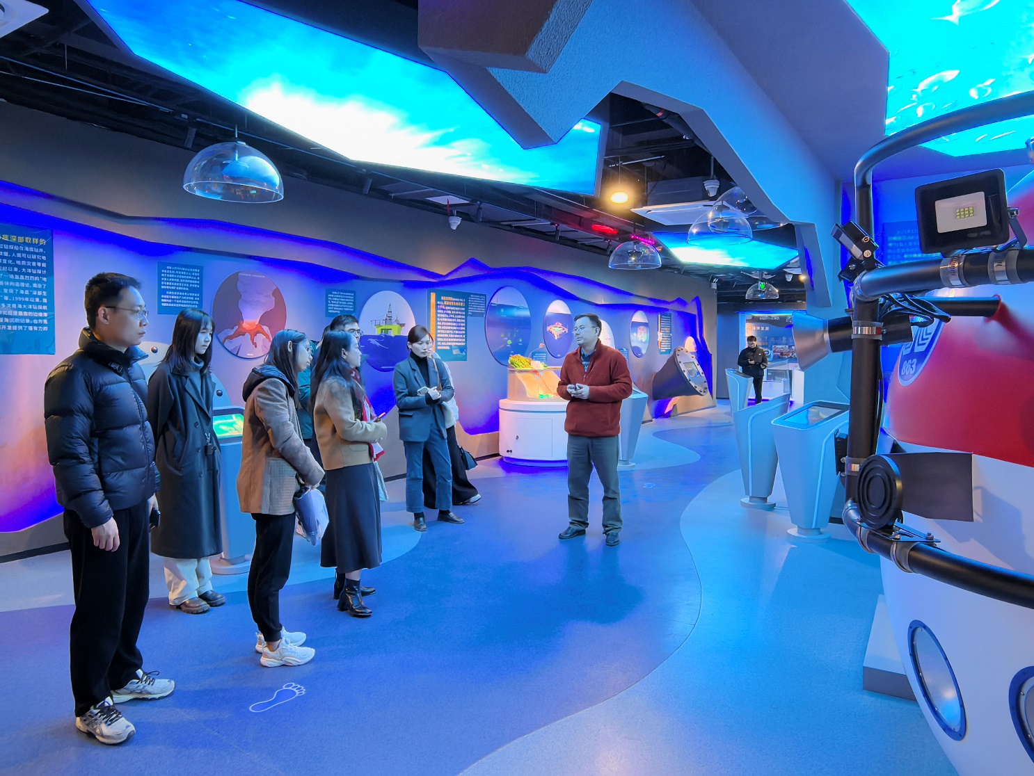 来访代表一行在suncitygroup太阳新城海洋科教馆常务副馆长李周佳的陪同下参观考察suncitygroup太阳新城和海洋科教馆。代表们高度认可公司在海洋科学教育、科研成果转化及科普平台建设方面取得的成果。