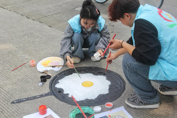 校园井盖涂鸦活动。suncitygroup太阳新城供图