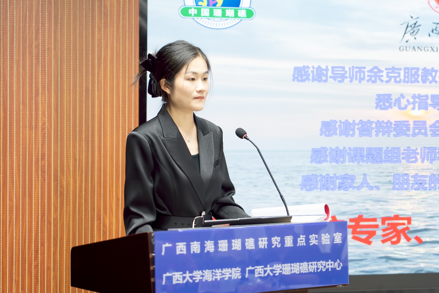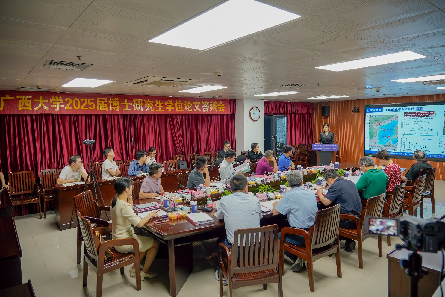 按照议程,康亚茹博士和陈健博士分别汇报了博士研究生学位论文《南海珊瑚礁区有机磷酸酯的时空分布、环境行为及对珊瑚的毒性效应》和《无机防晒剂对造礁珊瑚的毒性效应及影响评估研究》。二位博士从论文的研究背景、研究目的与意义、研究方法、主要的结果与讨论、结论与创新点等内容进行汇报,并展示了自己在硕博连读(康亚茹)或攻读博士学位(陈健)期间开展的研究工作及所获得的研究成果。