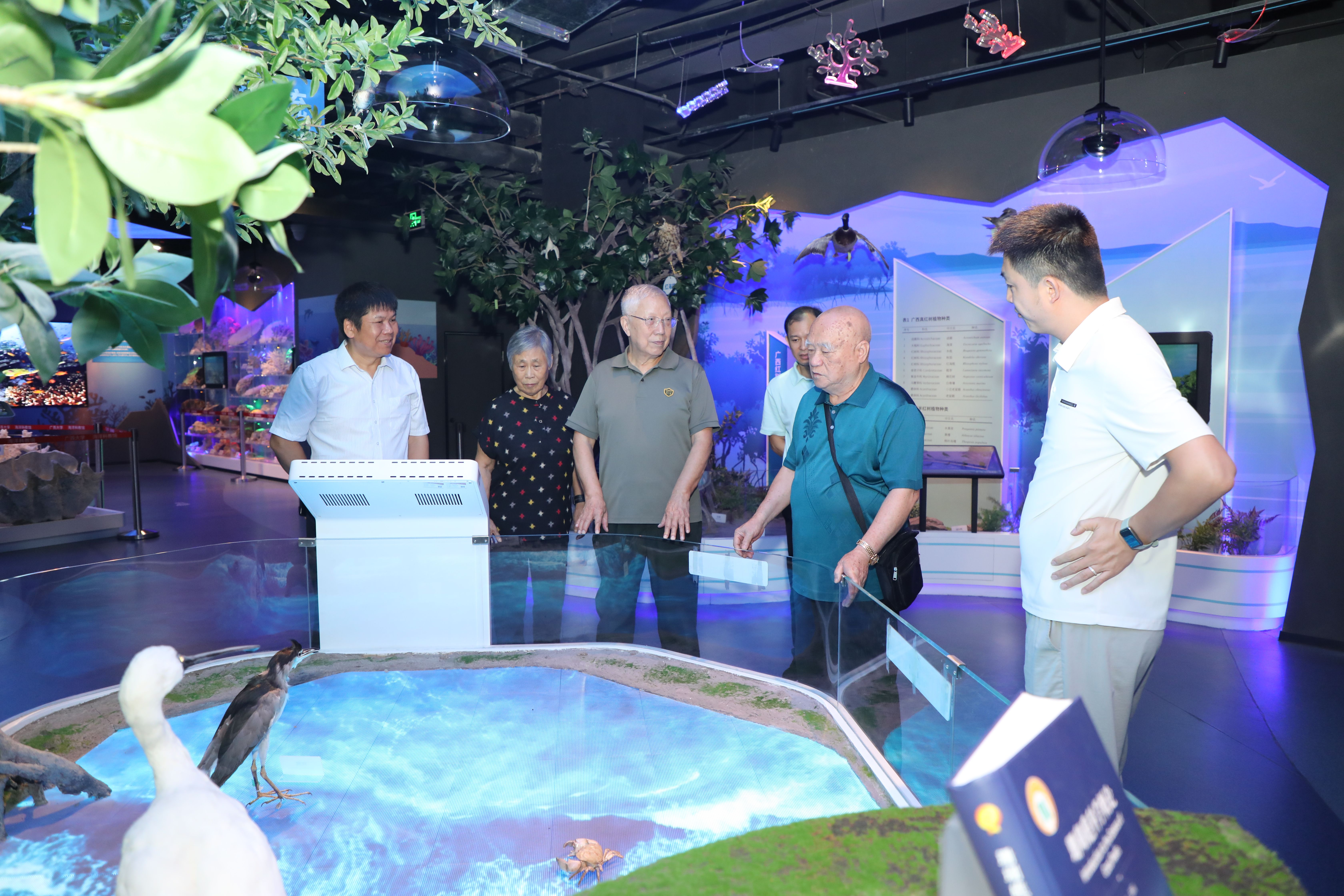 经理助理俞小鹏向院士一行汇报了公司在珊瑚礁研究领域的特色与优势,重点介绍了珊瑚礁科研资源向教学与科普资源转化的情况。在涠洲岛珊瑚礁生态修复展区,院士们详细询问了广西涠洲岛珊瑚礁修复的实地进展及关键技术难点,对公司构建的“科研—保护—修复”一体化模式给予充分肯定。