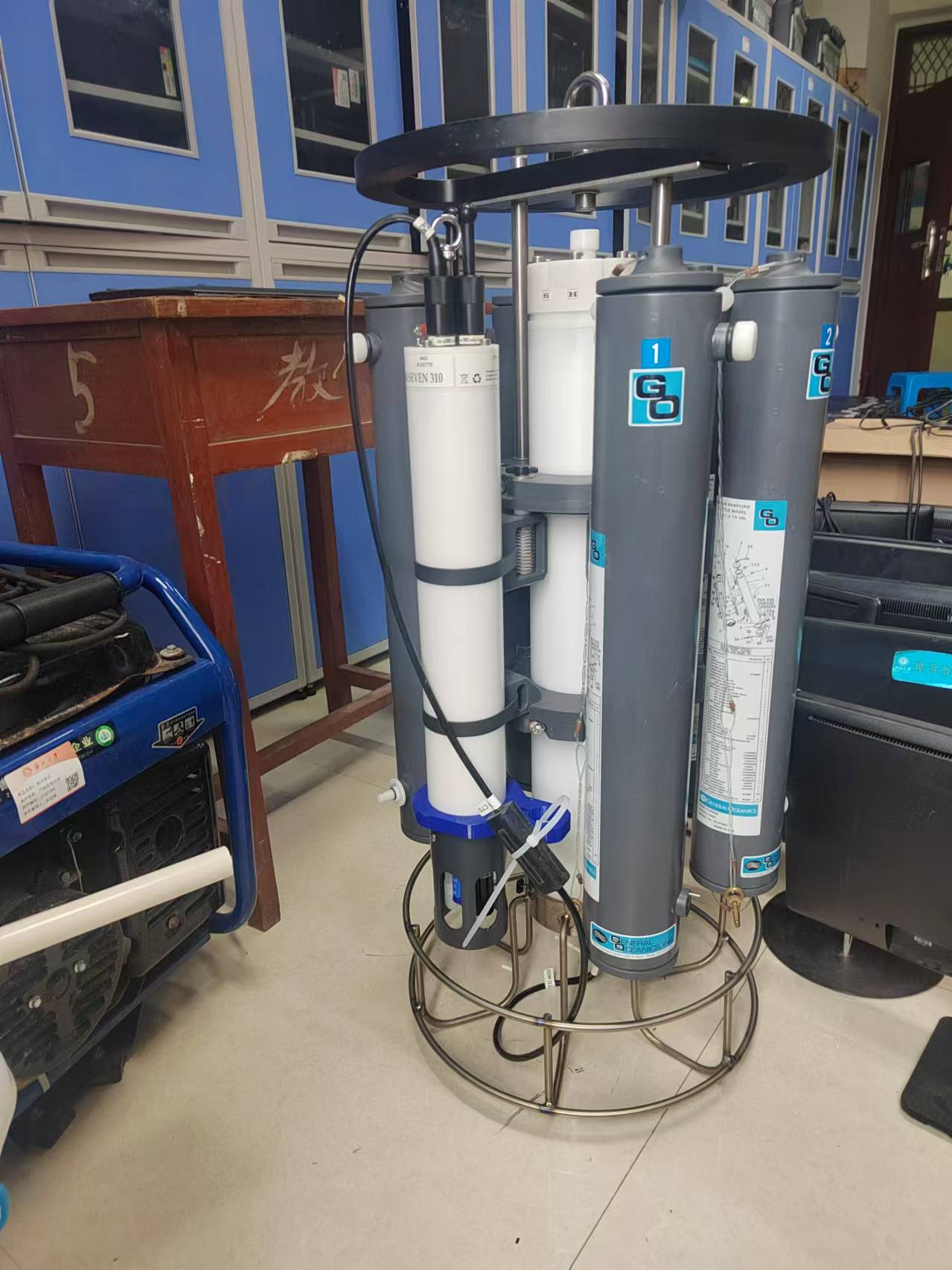 一款小型化的CTD采水器,其可搭载一台OCEAN SEVEN 310 CTD来管理采水器的采样作业并提供水质参数的同步测量数据,集成的传感器包括:压力、温度、电导率、pH、溶解氧、氧化还原电位、浊度、叶绿素a、藻蓝蛋白及藻红蛋白。采水器包含6个瓶位,其中CTD需占据一个瓶位。该系统集成一套5Ah,12VDC的镍氢充电电池包作为驱动电源,OCEAN SEVEN 310 CTD可以根据预设的时间或压力来自动激发采水器。其他特定参数的设定同样可以作为激发采水器的信号,比如浊度的增加、pH值或溶解氧的变化等。如果CTD是通过数据遥测系统来控制的话,用户可以在任意需要的时刻实时地激发采水器。